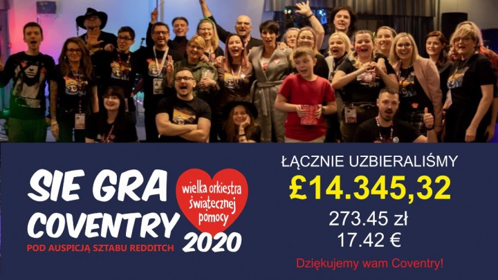 14.345,35 funtów zebrała Siegra Coventry na WOŚP Coventry 2020