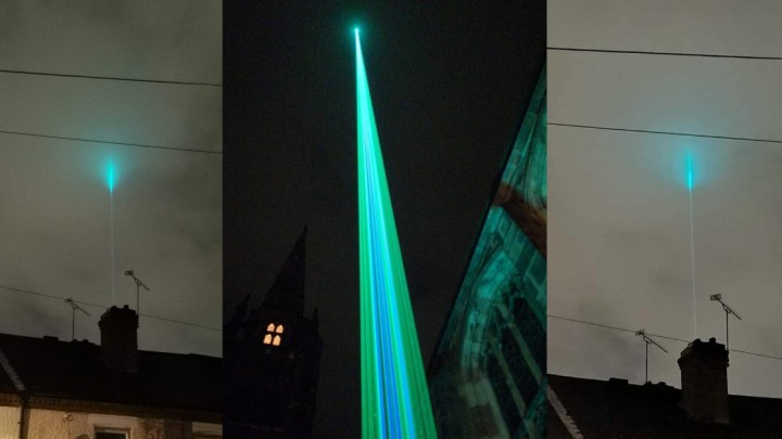 Odkąd zapadł zmierzch na zachmurzonym niebie w Coventry widać słup zielonego światła.