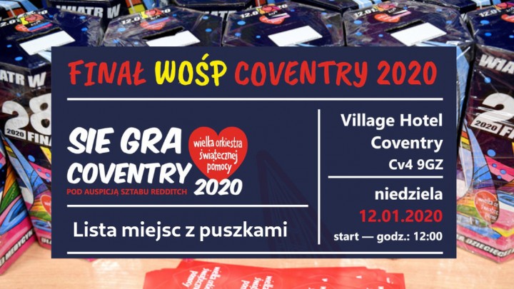 WOŚP Coventry 2020 puszki stacjonarne lista miejsc