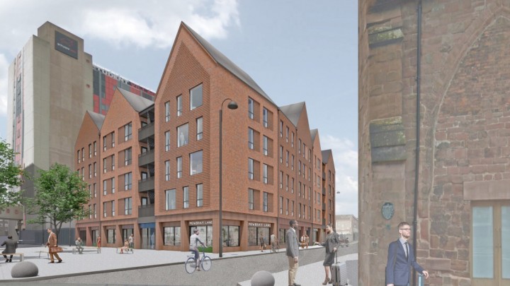 Poza mieszkaniami w budynku znajdować się będą także przestrzenie sklepowo-biurowe oraz parking.